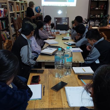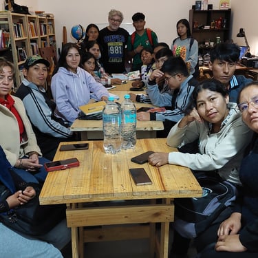 Como punto de partida simbólico de esta enriquecedora experiencia, el equipo organizador y el autor realizaron una visita al Cementerio de Tortugas, uno de los sitios paleontológicos más emblemáticos de Torotoro. Esta caminata no solo brindó un momento de contemplación y asombro, sino que también sirvió de inspiración para las actividades literarias que se desarrollarían después. Agradecemos de manera especial a la oficina del SERNAP Torotoro, por permitirnos este recorrido, y a Silveria, nuestra guía, quien con gran calidez, conocimiento y entusiasmo nos acompañó durante toda la travesía. Su dedicación fue fundamental para conectar la riqueza natural del entorno con la creatividad literaria que íbamos a fomentar.