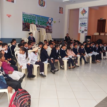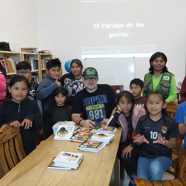 La visita del escritor continuó al día siguiente con una presentación especial en los ambientes de la Dirección Distrital de Educación de Torotoro, dirigida a niños de la Unidad Educativa Mariscal Sucre. Fue un evento emotivo y educativo, donde los cuentos cobraron vida una vez más ante un público entusiasta. Este encuentro no habría sido posible sin el apoyo incondicional del Director Distrital de Educación de Torotoro, el Director de la Unidad Educativa Mariscal Sucre y las profesoras comprometidas que acompañaron con cariño y entrega esta iniciativa.
